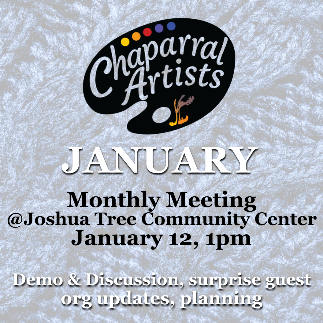 We are an art organization in the Morongo Basin that exists to support artists. Chaparral Artists started as a group of friends that wanted to assist the local theater, later separating into the Chaparral Artists organization. In 2013 we were granted 501(c)3 status with a strong goal of supporting art culture and providing youth art opportunities in the area.