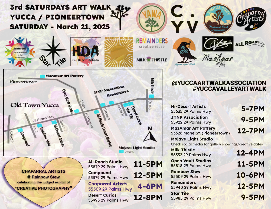 March 21 (4-6pm) at Rainbow Stew in Yucca Valley