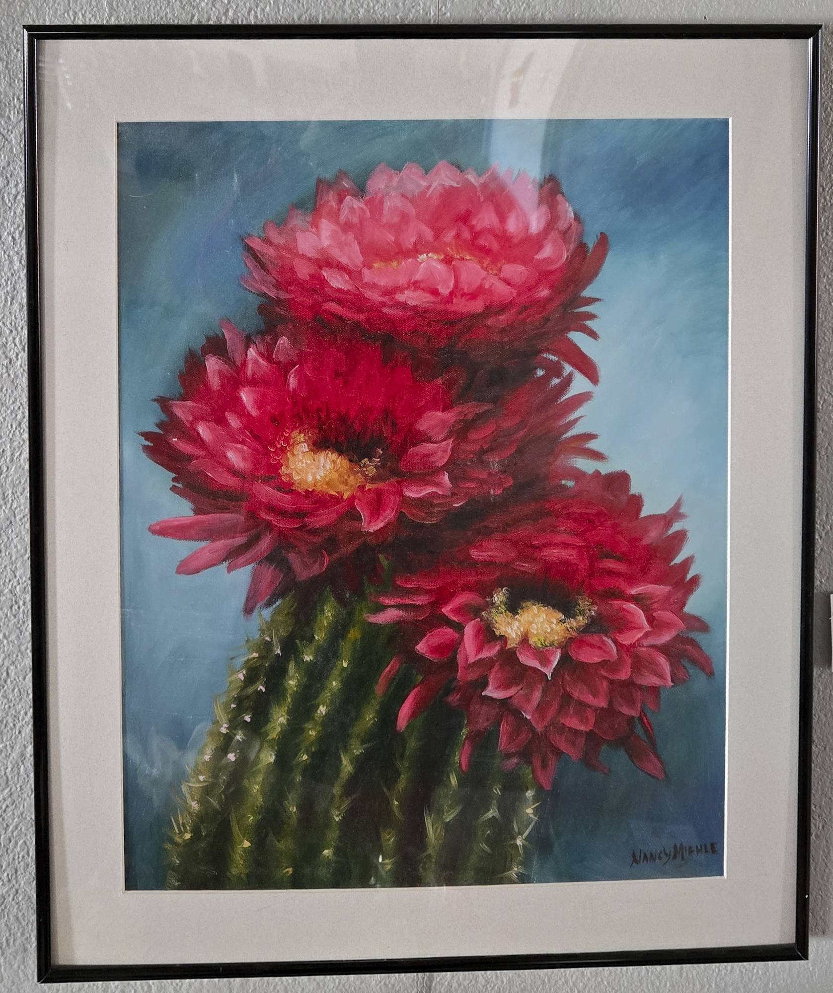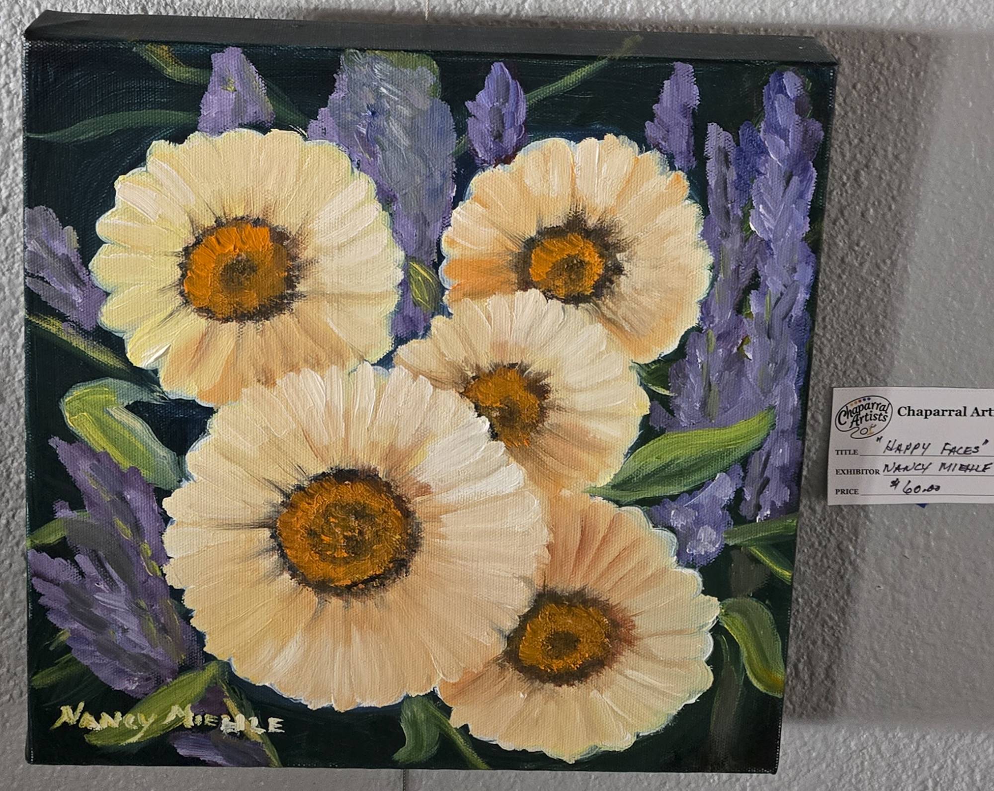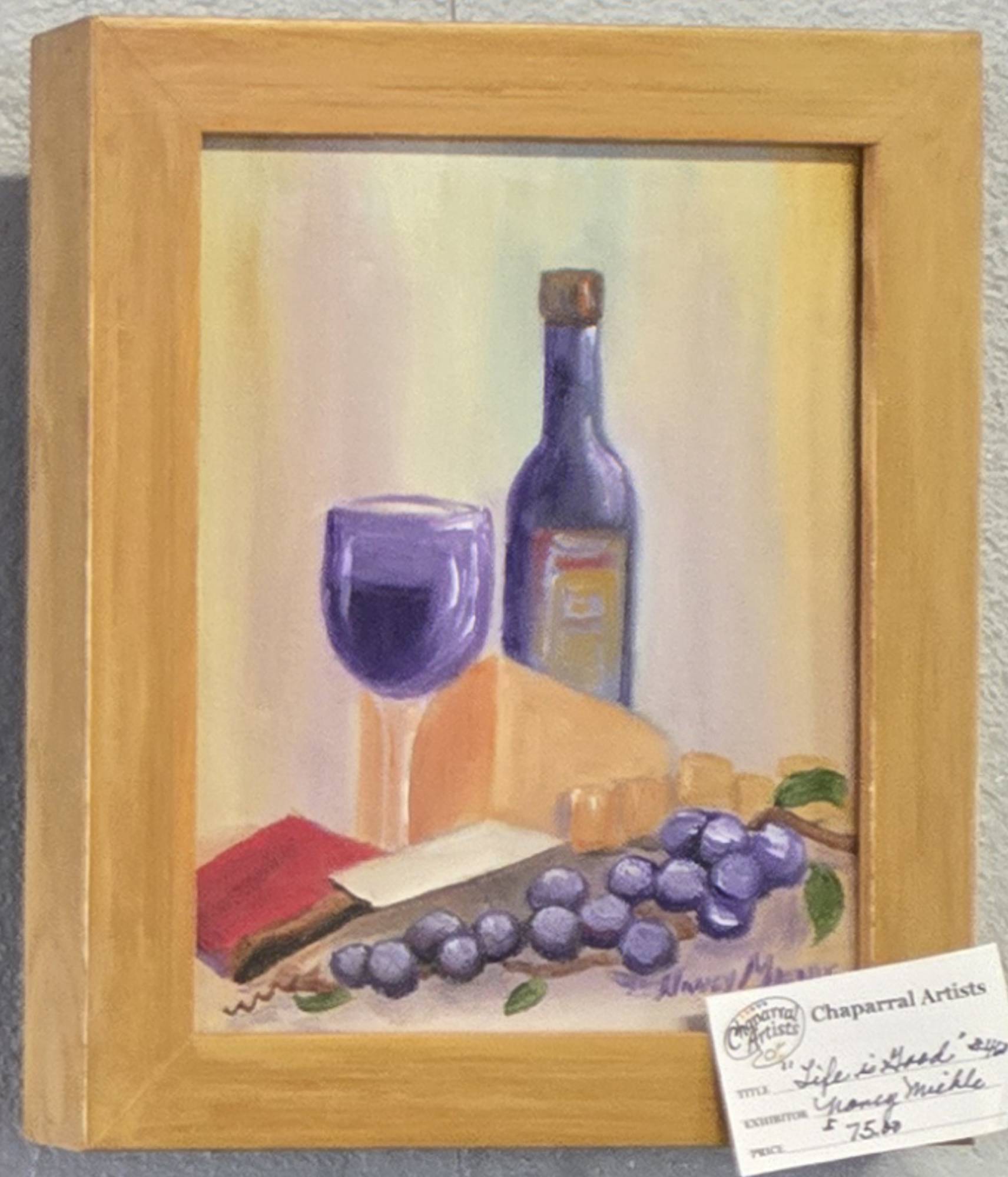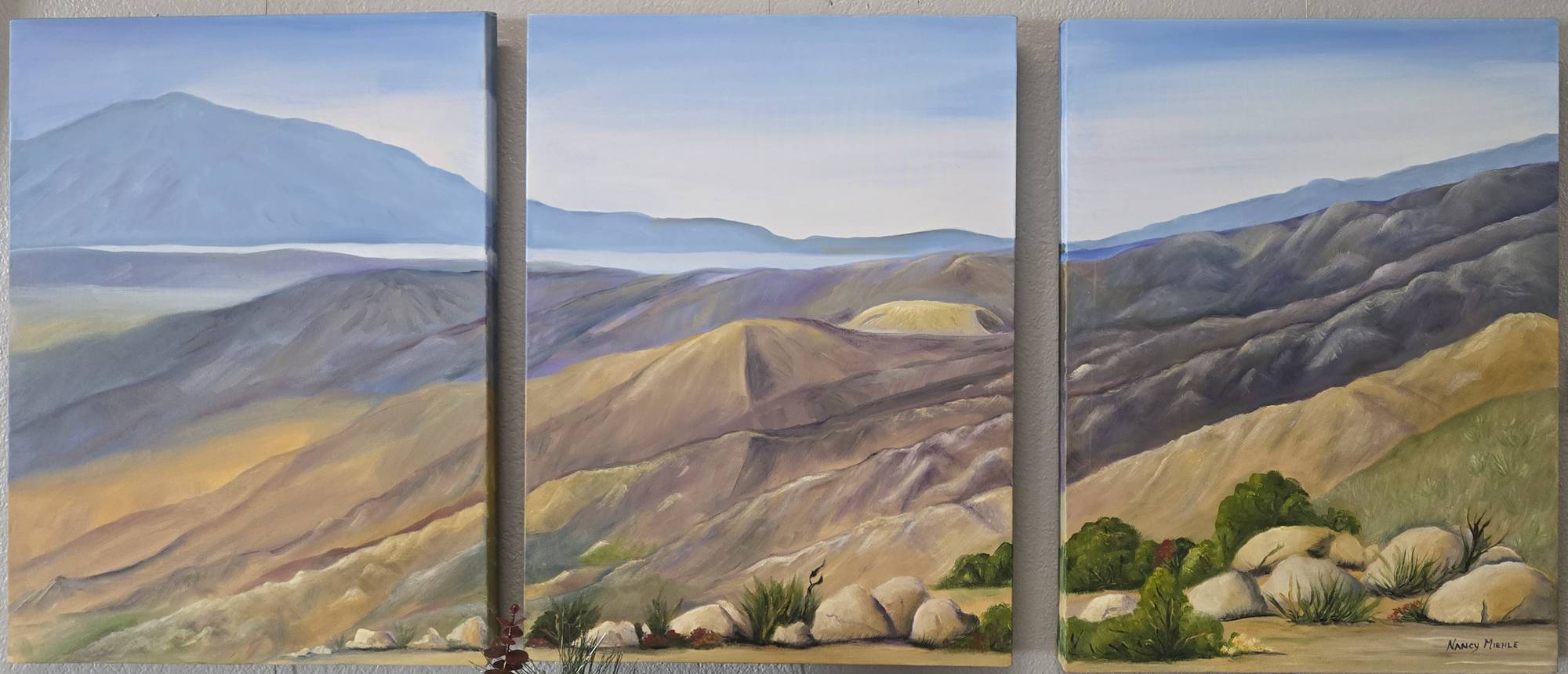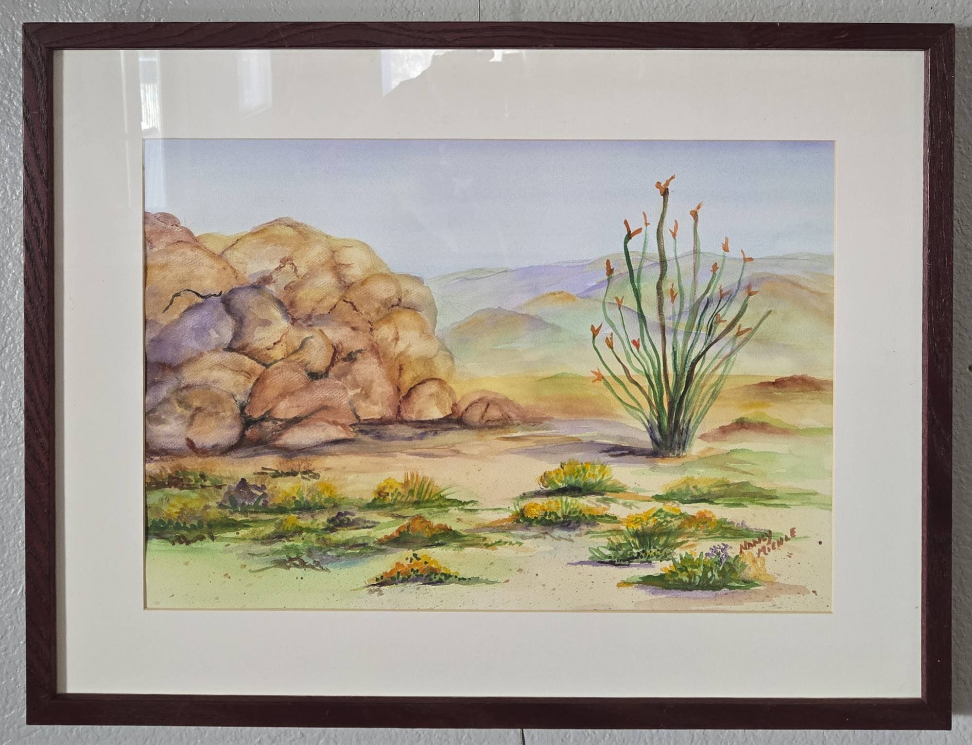 Chaparral member Nancy Miehle offered a wonderful glimpse into her creative world during January 2025. While she enjoys working in a variety of mediums, her passion shines most in oils and stained glass. For this showcase, Nancy presented a beautiful range of works, from expansive desert landscapes in oil to delicate stained-glass creations, and even a gentle watercolor piece.