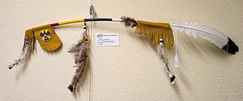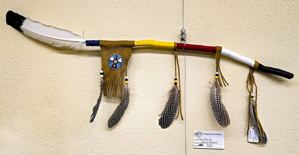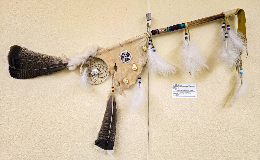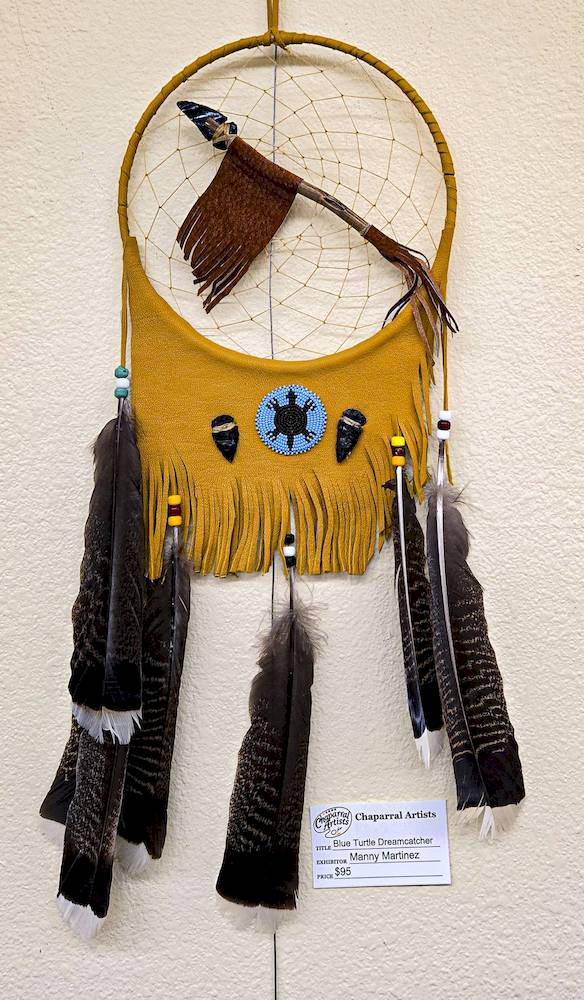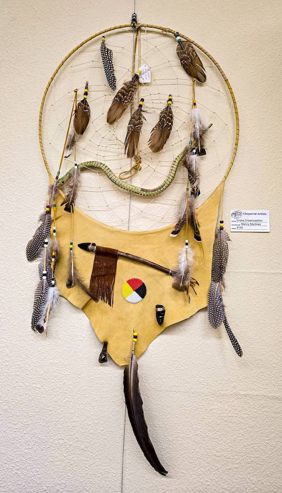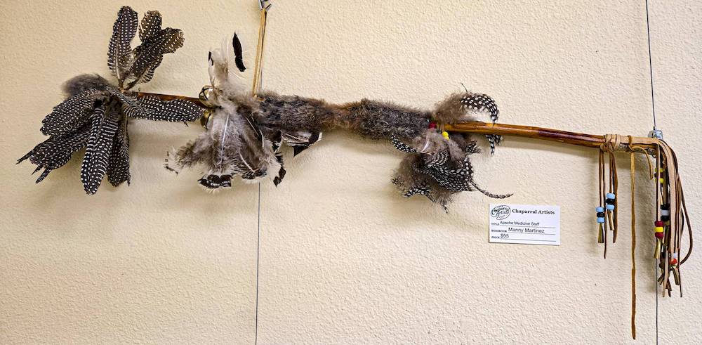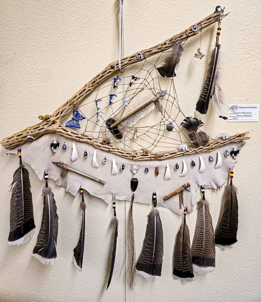 Chaparral member Manny Martinez presented a wonderful collection of mixed-media artworks throughout March at Desert Hills Presbyterian Church in Yucca Valley. Born in Ontario, Manny has found his true home in the desert, where he has reconnected with his Mescalero Apache heritage through music, art, and the creation of handcrafted Native replicas that honor the traditions of his ancestors.
