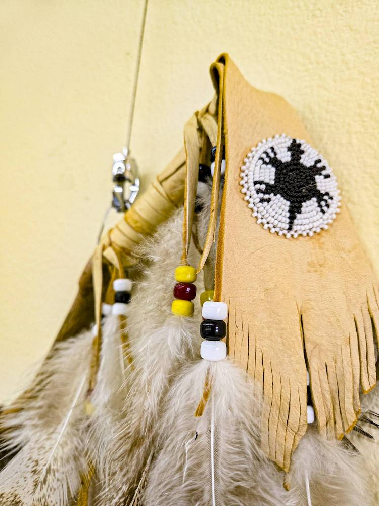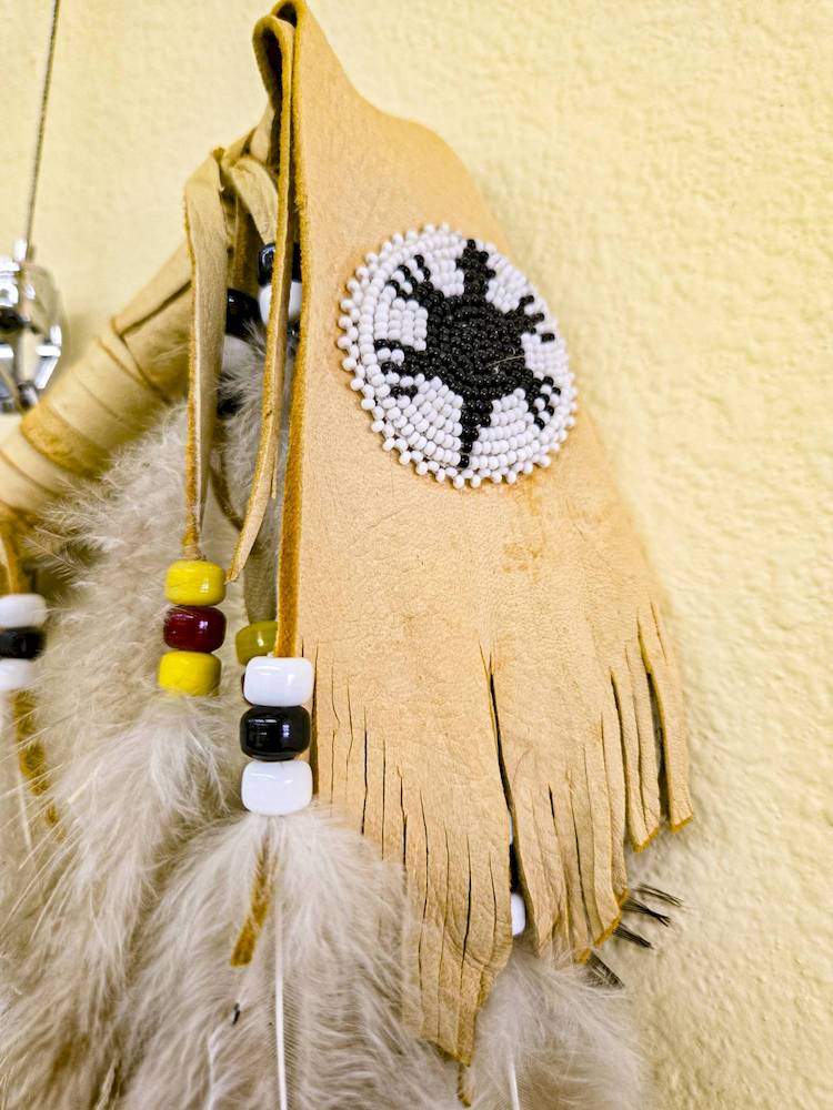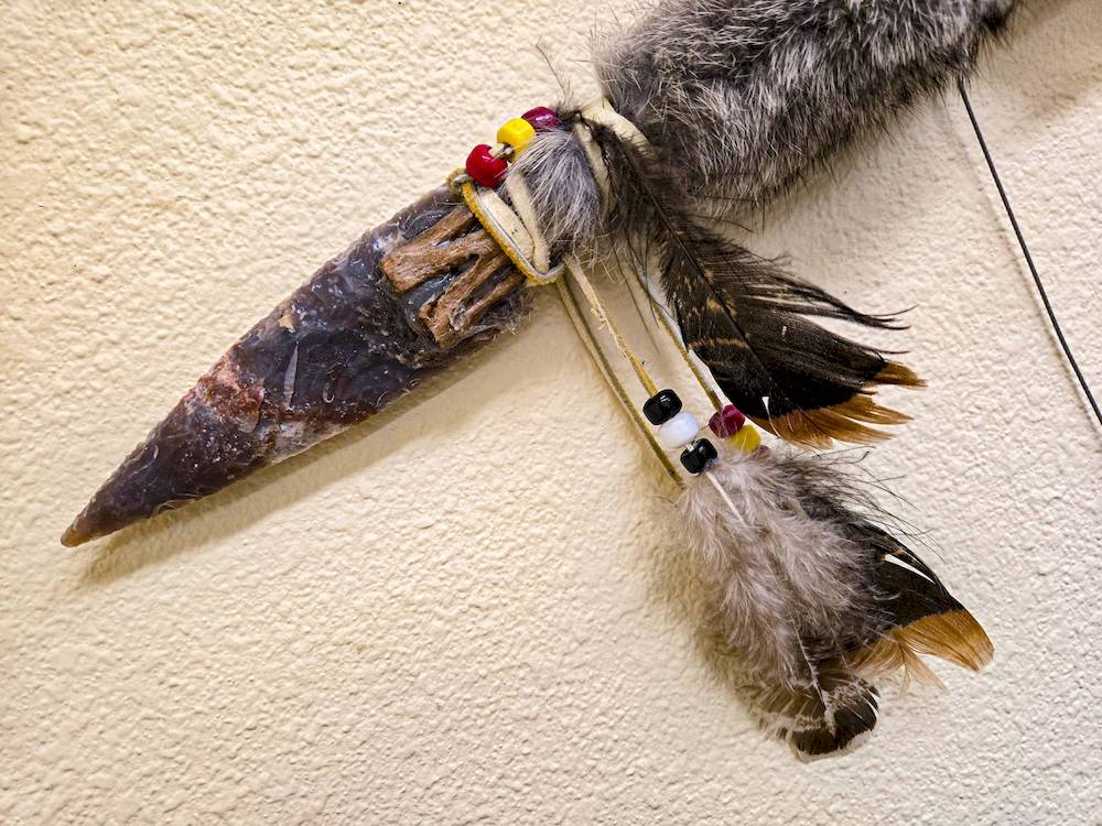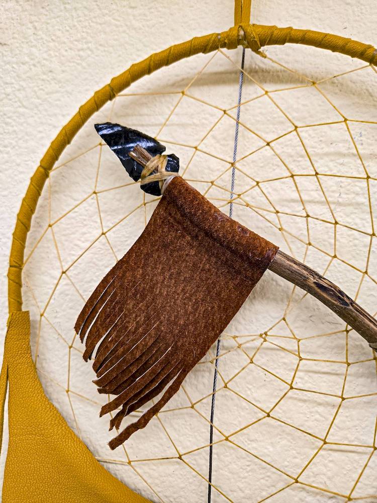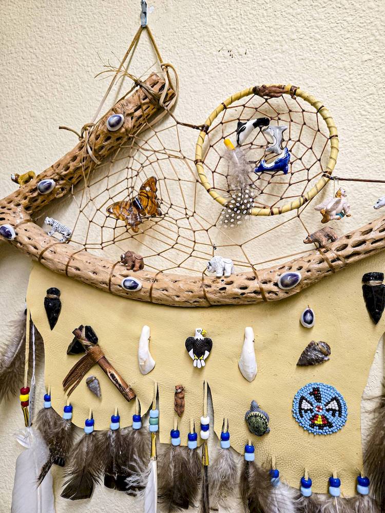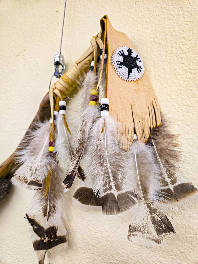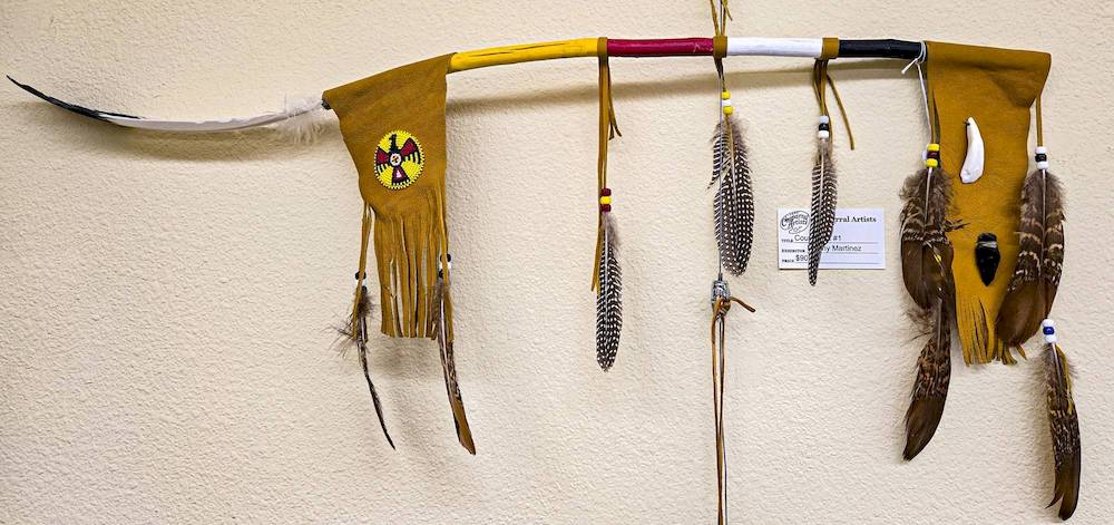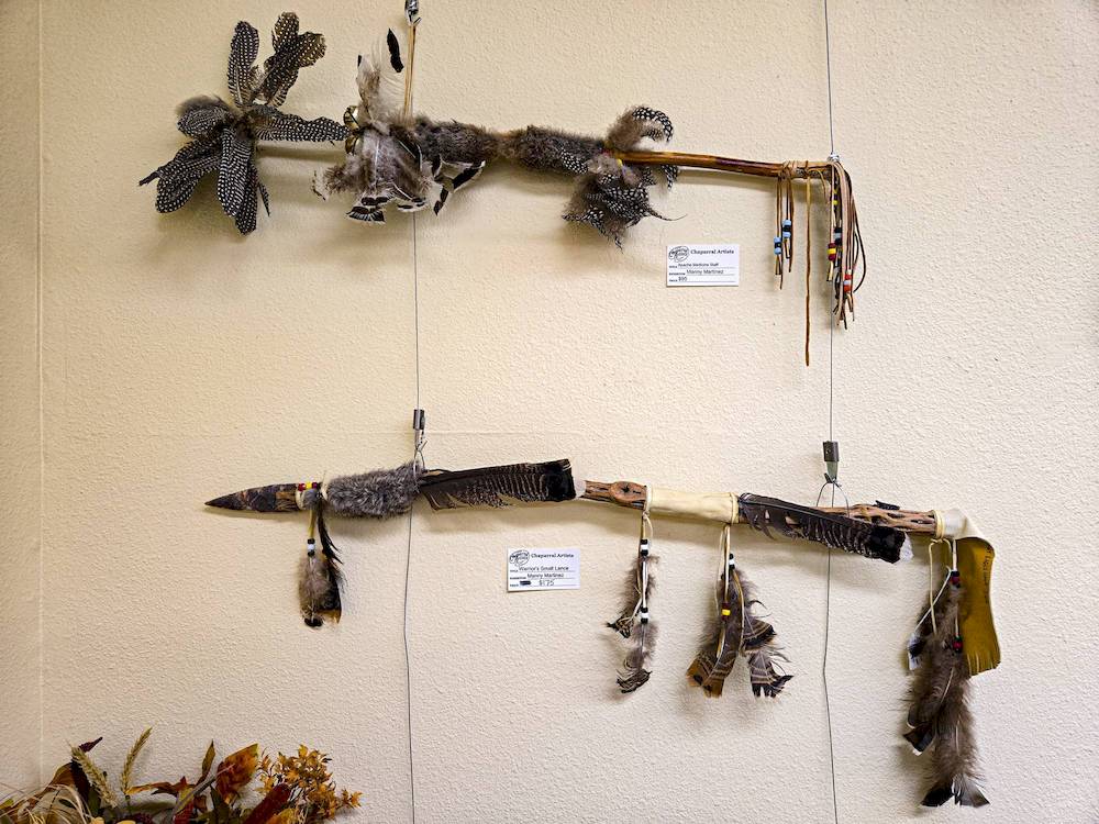 Throughout the collection, Manny incorporates materials gathered from the desert environment. Cholla wood, with its striking porous texture, and locally sourced rocks, shaped into arrowheads and embellishments, bring a strong sense of place and joy to his work. The result is a display that not only celebrates Native craftsmanship but also honors the desert landscape that now inspires him daily.