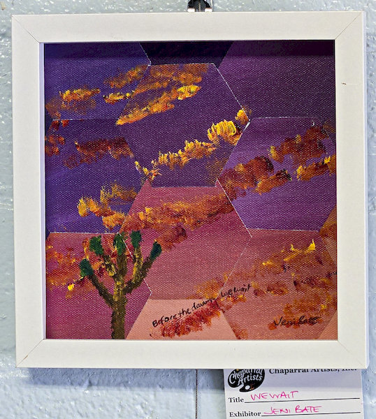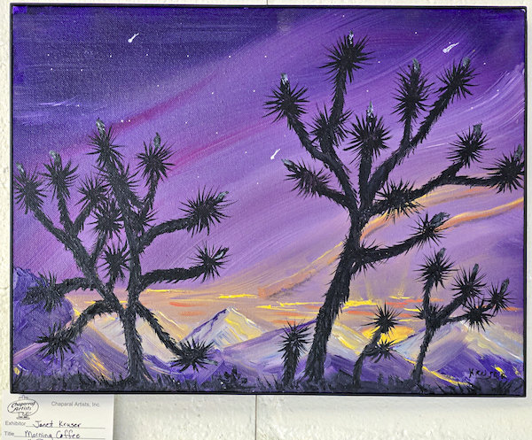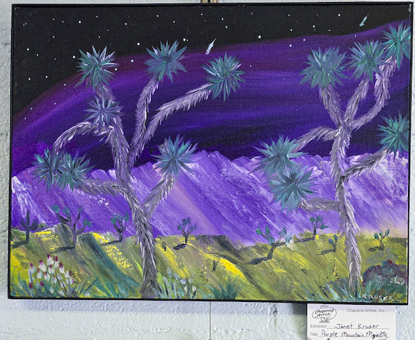 We all want to take advantage of this great space because it sees a constant stream of traffic throughout the week. Chaparral Artists see sales through this venue, so do not pass up the opportunity to hang your art with us when you can during these shows.