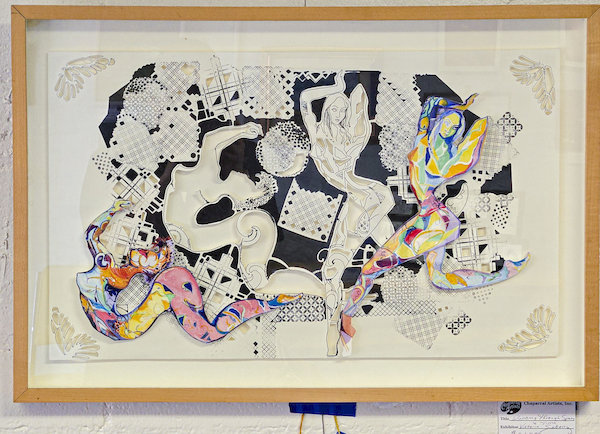 "Very creative concept - draws in the viewer - nicely framed (mixed media)"